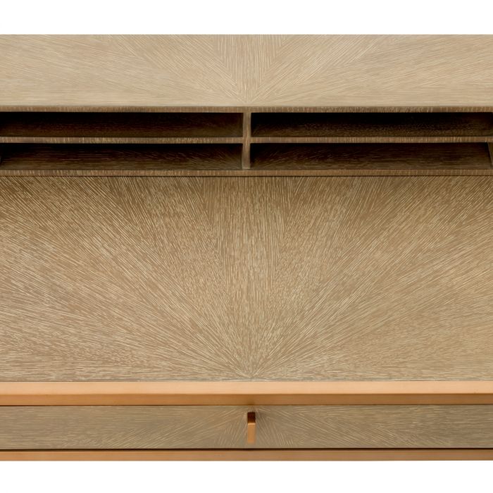 Washed Oak Veneer Desk Highland is a beautifully streamlined writing desk in retro design with drawer set on a metal frame with brushed brass finish.
