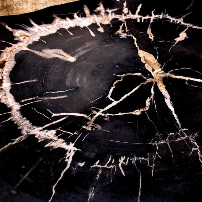 Grains, knots and holes grant a unique appearance to the Coffee Table De Soto set of 3 with petrified wood table tops.