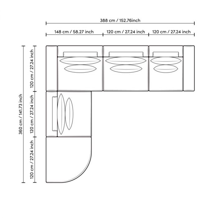 - W. 388 | D. 360 | H. 77 | SD. 52 | SH. 40 | AH. 53 cm cm