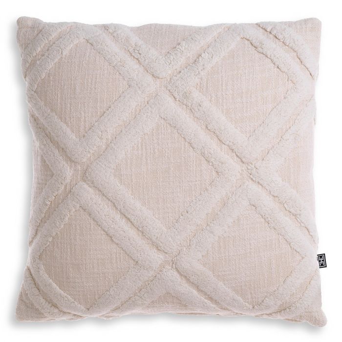 Experience the timeless sophistication of the Eichholtz cushion Maris L. This elegant off-white cushion, crafted from high-quality fabric, showcases a plush geometric pattern that enhances its luxury appeal.