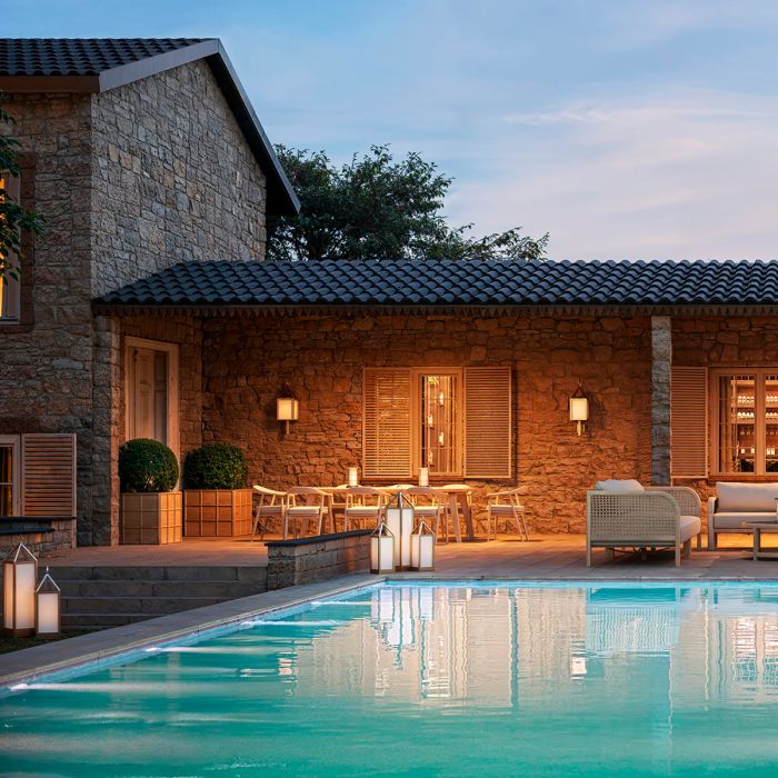 Transform your outdoor space with the Outdoor Dining Chair Beale, a blend of natural teak elegance and Flores off-white luxury.
