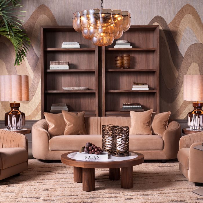 The Vase Eliano S in frosted amber embodies refined luxury with its warm, amber finish.