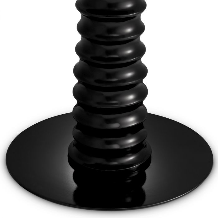 Elevate your interiors with the Dining Table Verano, where a sleek high-gloss black wooden base contrasts beautifully with a pristine white marble top.