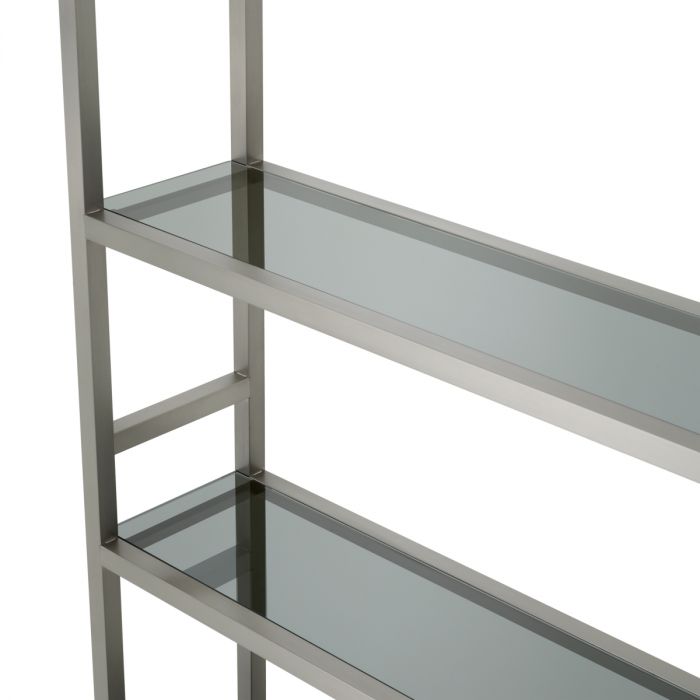 Sculpted sophistication emerges with the Cabinet Corrado I, where a brushed steel finish meets smoke glass intricacies.