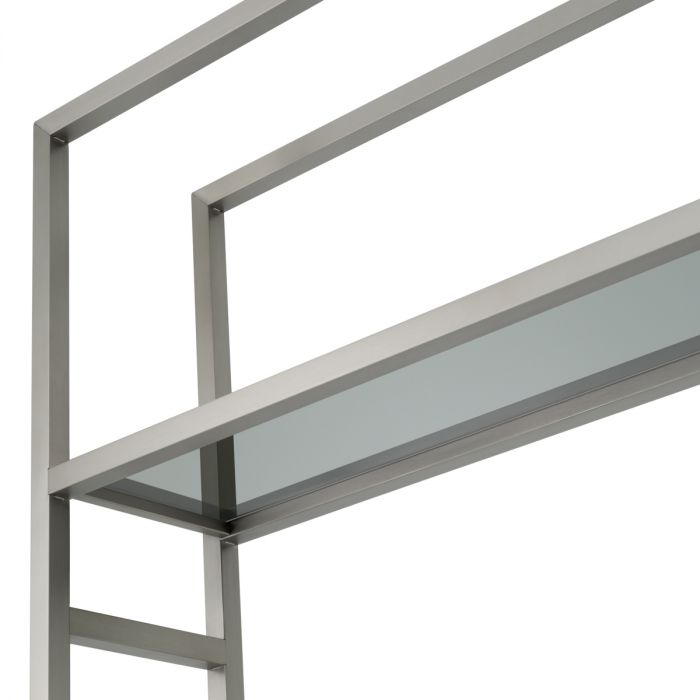 Unveil sophistication with Cabinet Corrado II, showcasing a stunning brushed steel finish complemented by smoke glass elements.