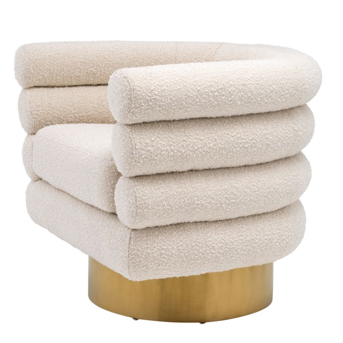 The fabulous Maguire Swivel Chair oozes a touch of decadence with its bouclé cream upholstery and brushed brass finished swivel base.