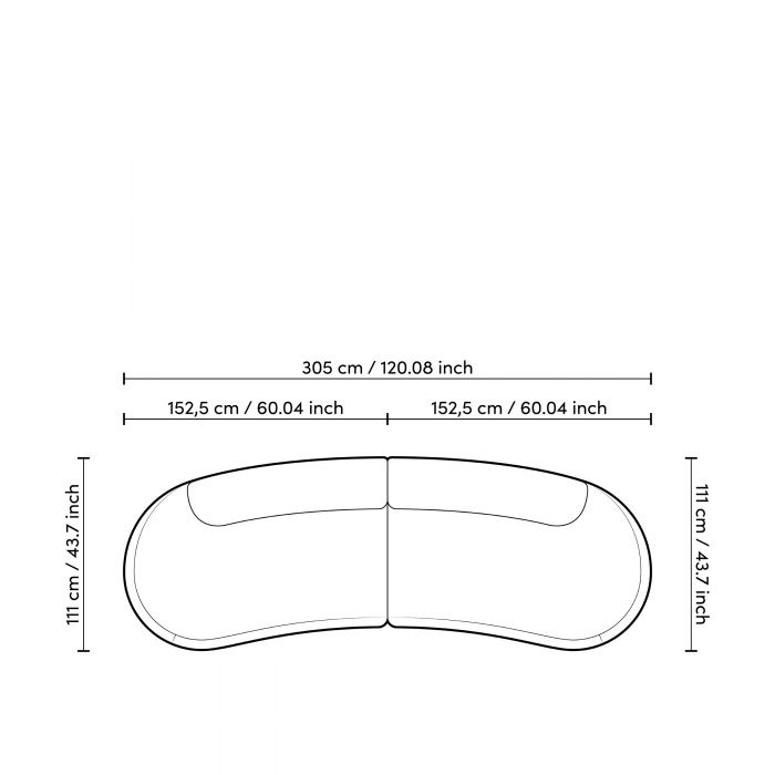 - W. 305 | D. 111 | H. 70 | SD. 72 | SW. 229 | SH. 43 cm cm
