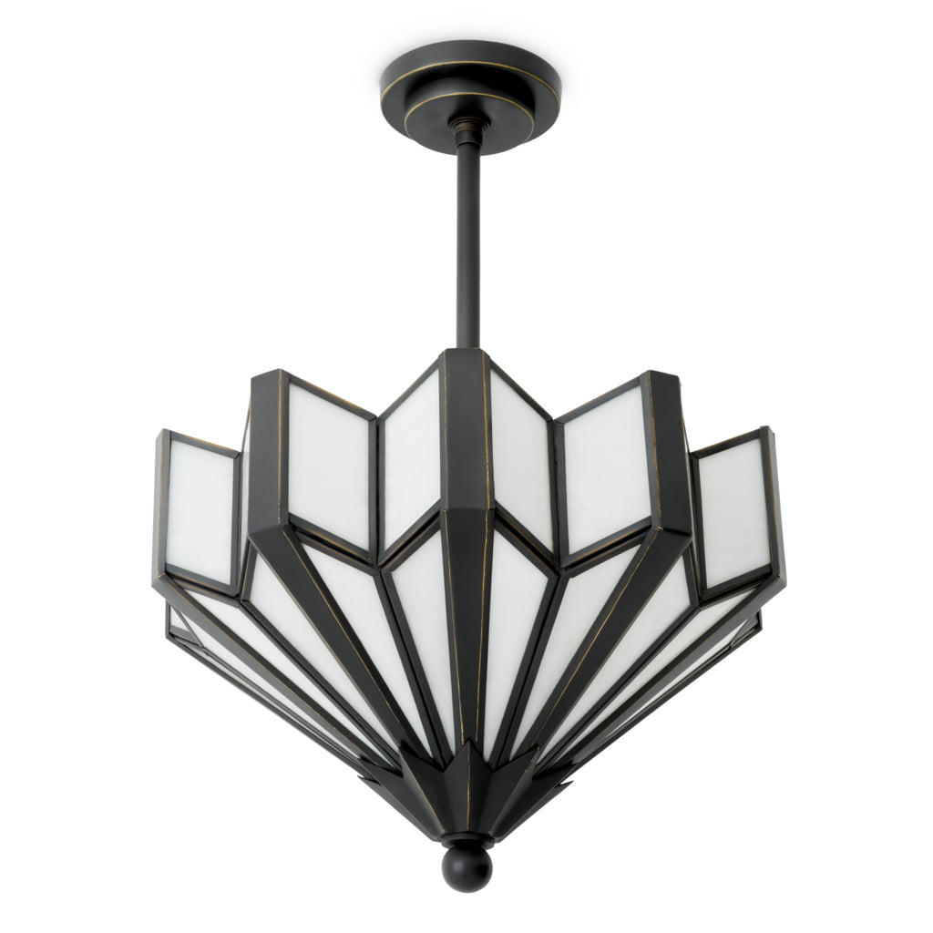 Explore the Eichholtz Victory Ceiling Lamp, designed in collaboration with interior designer Corey Damen Jenkins. A luminous ode to the Art Deco era, Victory celebrates the geometry and grandeur that defined the design revolution of the 1920s and ’30s with a fan-shaped silhouette. Panels of white-toned glass emit a soft, diffused glow, framed by dark metal ribs. Also available as a wall lamp and chandelier, Victory stands as a testament to enduring artistry for your home.