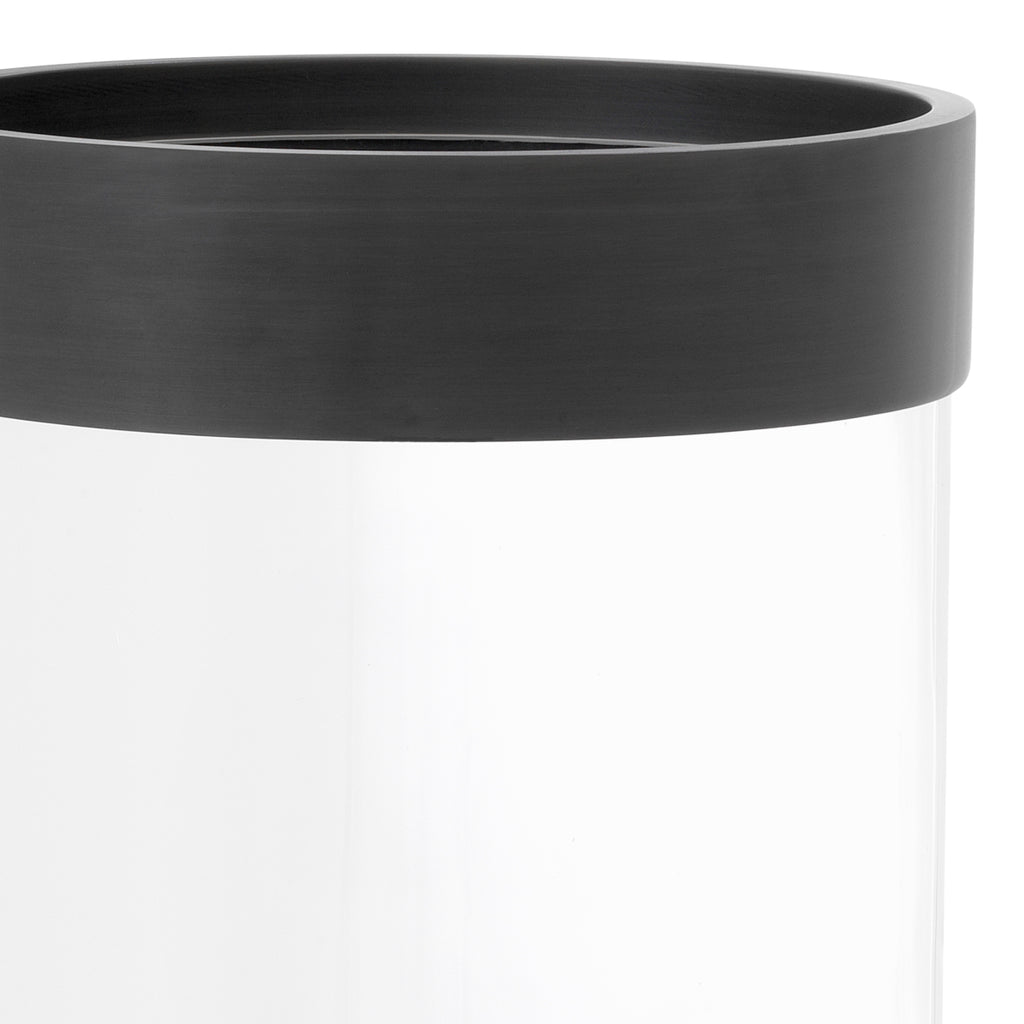 The Vertex L Hurricane brings elegant charm to your décor, whether used as a single showpiece or a stylish addition to a romantic ensemble. This conical clear glass hurricane features a stunning bronze rim.
