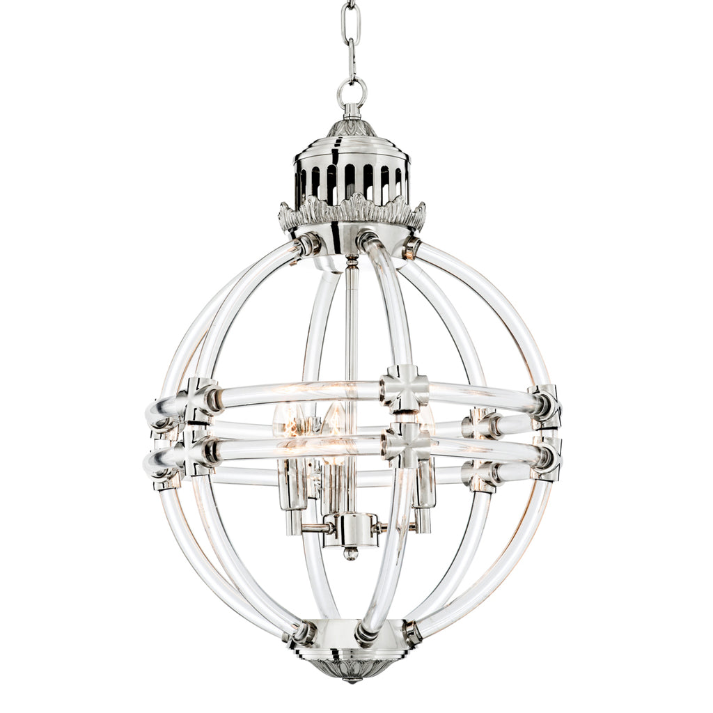 Add a touch of classical grandeur to your interior with the charming Impero Chandelier. This utterly attractive lamp comprises a subtly decorated, round structure with a nickel finish and clear acrylic curved rods. A wonderful asset for your home lighting arrangement.