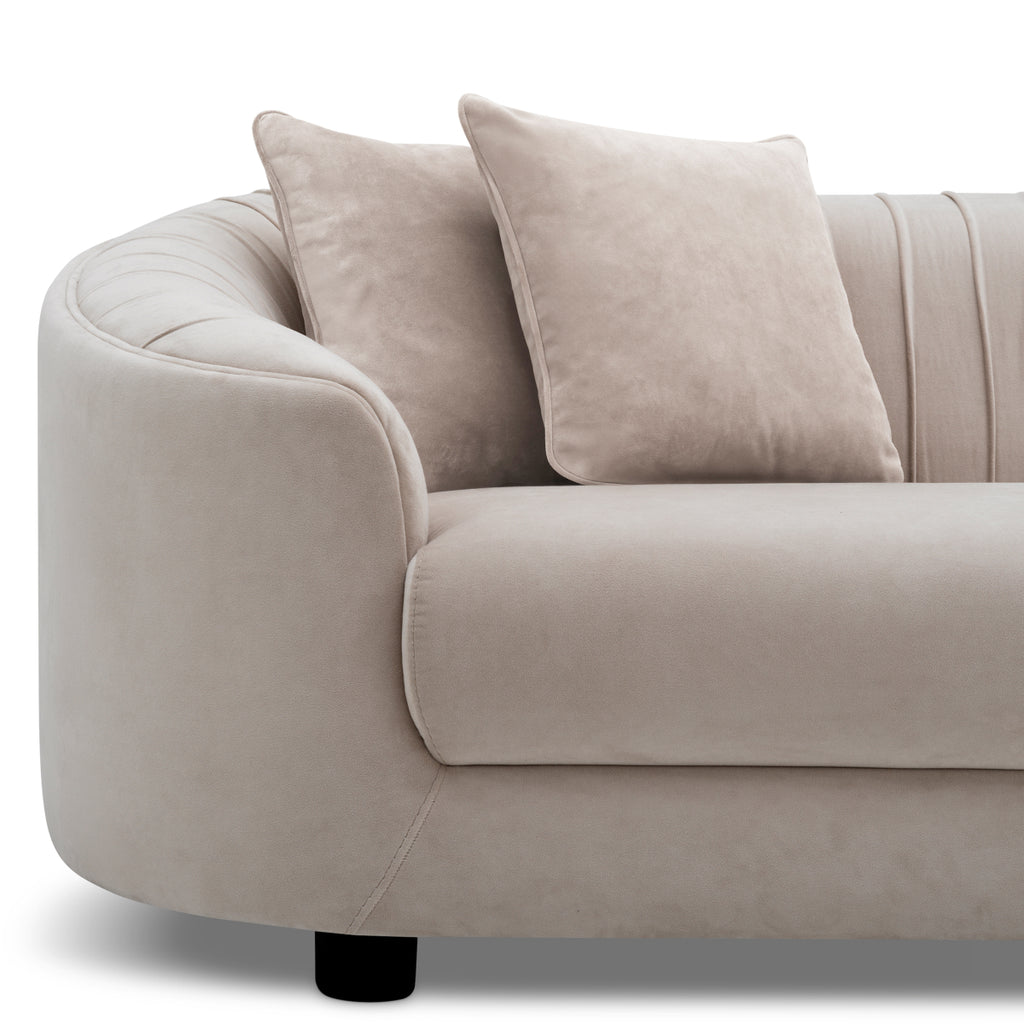 Experience the Sofa Jameson in Amaro cream, featuring a soft, light fabric that blends comfort with style. Its sleek black feet add a modern touch, making this sofa a standout piece that combines elegance and durability with effortless charm.