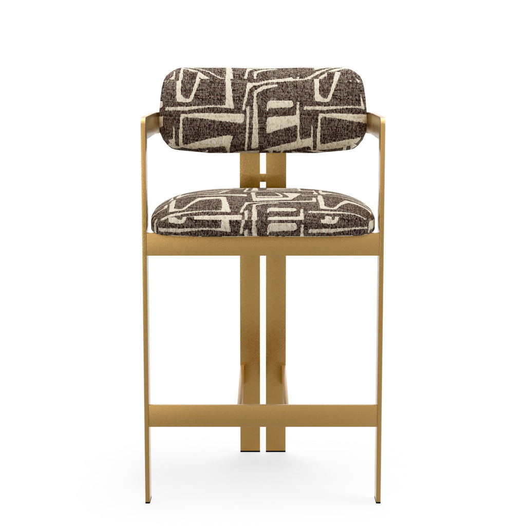 This striking stool features armrests that seamlessly extend into the front legs, with two rear legs supporting the gently rounded backrest. Upholstered in Hastings camel fabric and finished with a brushed brass frame, Donato combines luxury and comfort in one sophisticated design. Perfect for contemporary and classic interiors.