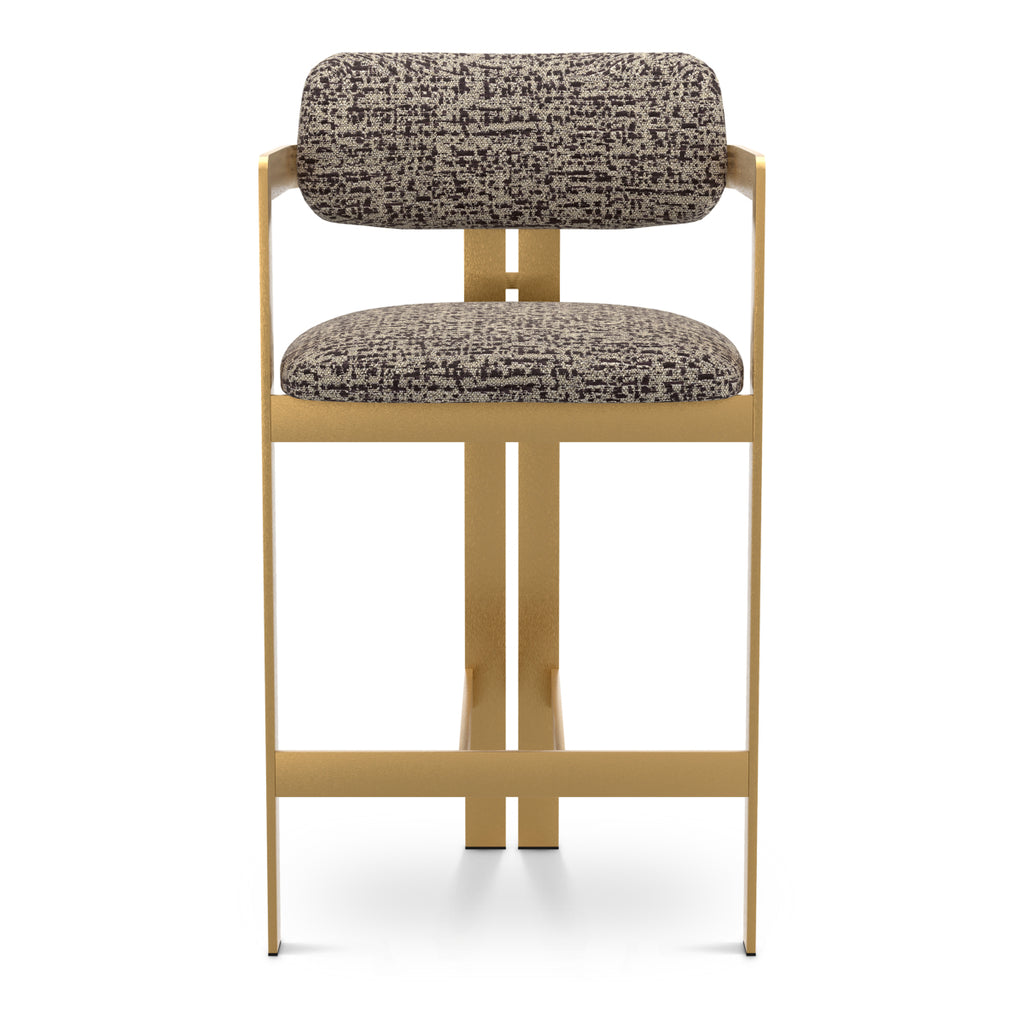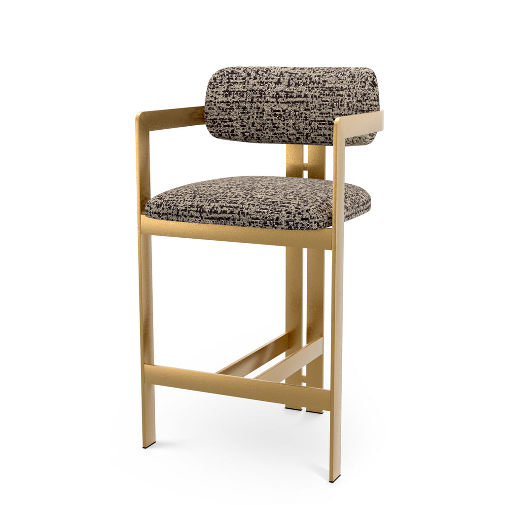 This striking stool features armrests that seamlessly extend into the front legs, with two rear legs supporting the gently rounded backrest. Upholstered in Hastings camel fabric and finished with a brushed brass frame, Donato combines luxury and comfort in one sophisticated design. Perfect for contemporary and classic interiors.