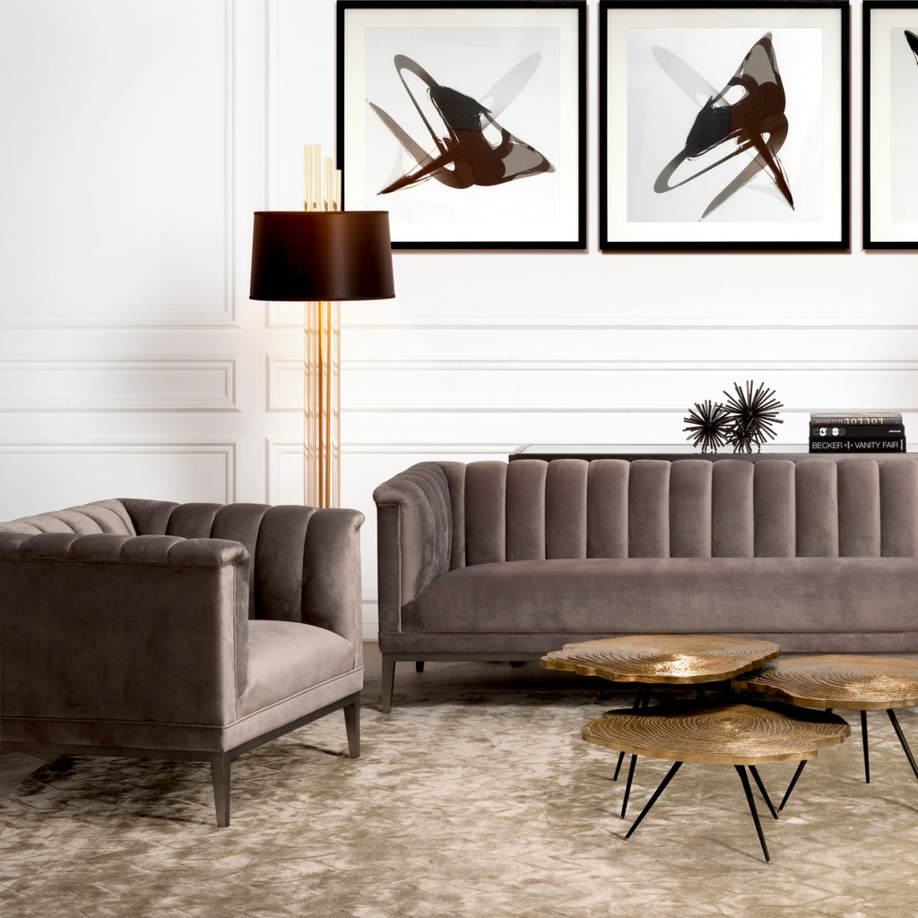 The ultra-padded inner promotes a sink-in feeling of luxury and the stitched detailing on the back creates the characteristic 50s contoured piped effect. Invite the unsurpassed retro style of the Eichholtz Raffles series into your home. Reminiscent of vintage roll-back sofas, this modern interpretation features a voguish velvet upholstery. Combine with luxury lighting and design furniture from the Eichholtz collection for an extravagant or eclectic interior style.