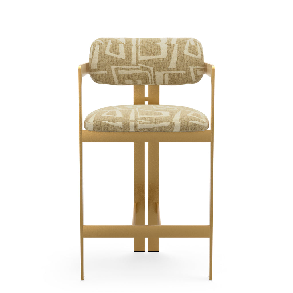 This striking stool features armrests that seamlessly extend into the front legs, with two rear legs supporting the gently rounded backrest. Upholstered in Hastings camel fabric and finished with a brushed brass frame, Donato combines luxury and comfort in one sophisticated design. Perfect for contemporary and classic interiors.