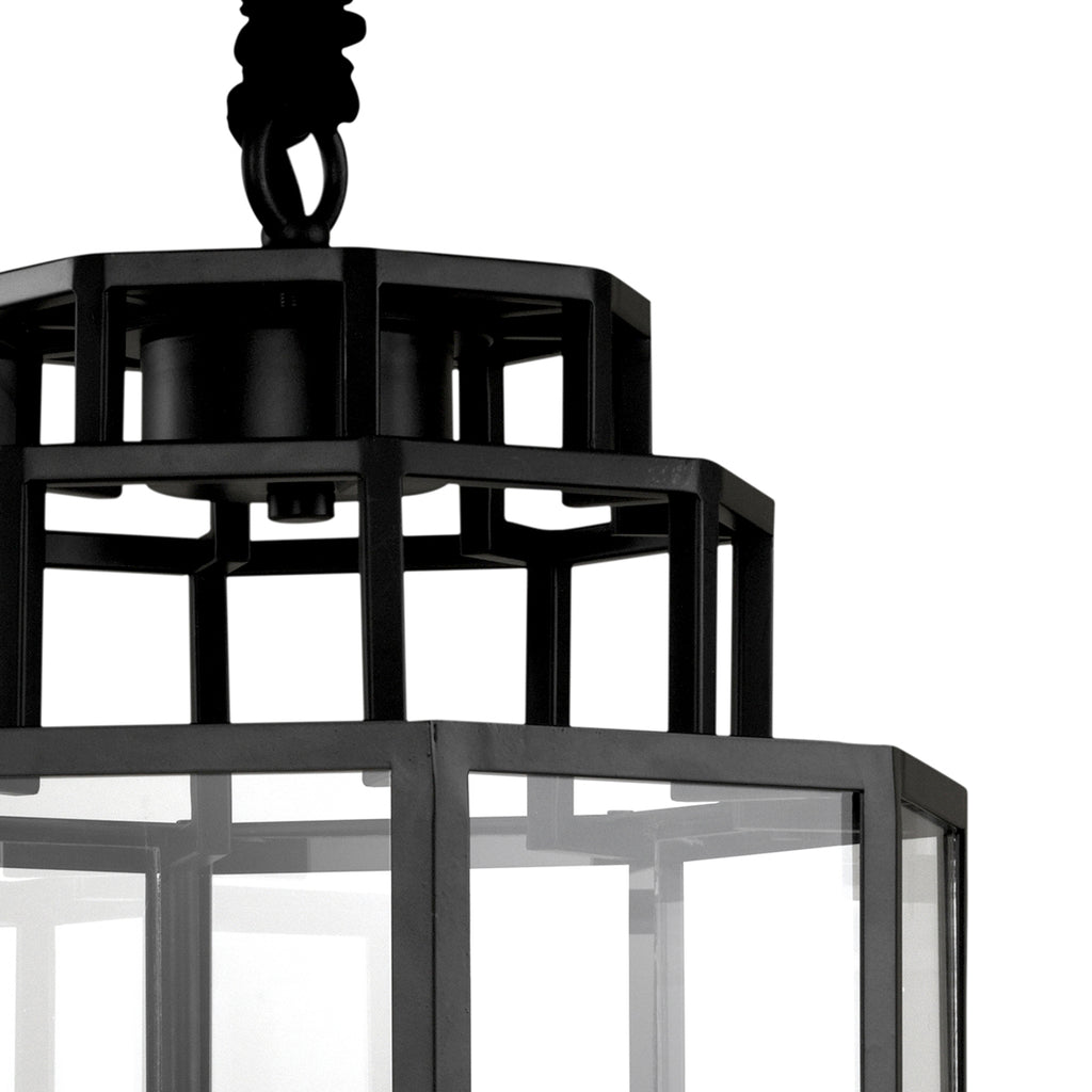 Tastefully blending contemporary design with a touch of industrial flair, the Monticello M Lantern is an updated classic. Crafted from metal in a matte black finish, this craftsman-style design showcases an octagonal frame with clear glass panels around a cylindric cream lampshade. This hanging lantern from Eichholtz is perfect for both traditional and contemporary interior spaces. Monticello draws inspiration from elegant street lights.