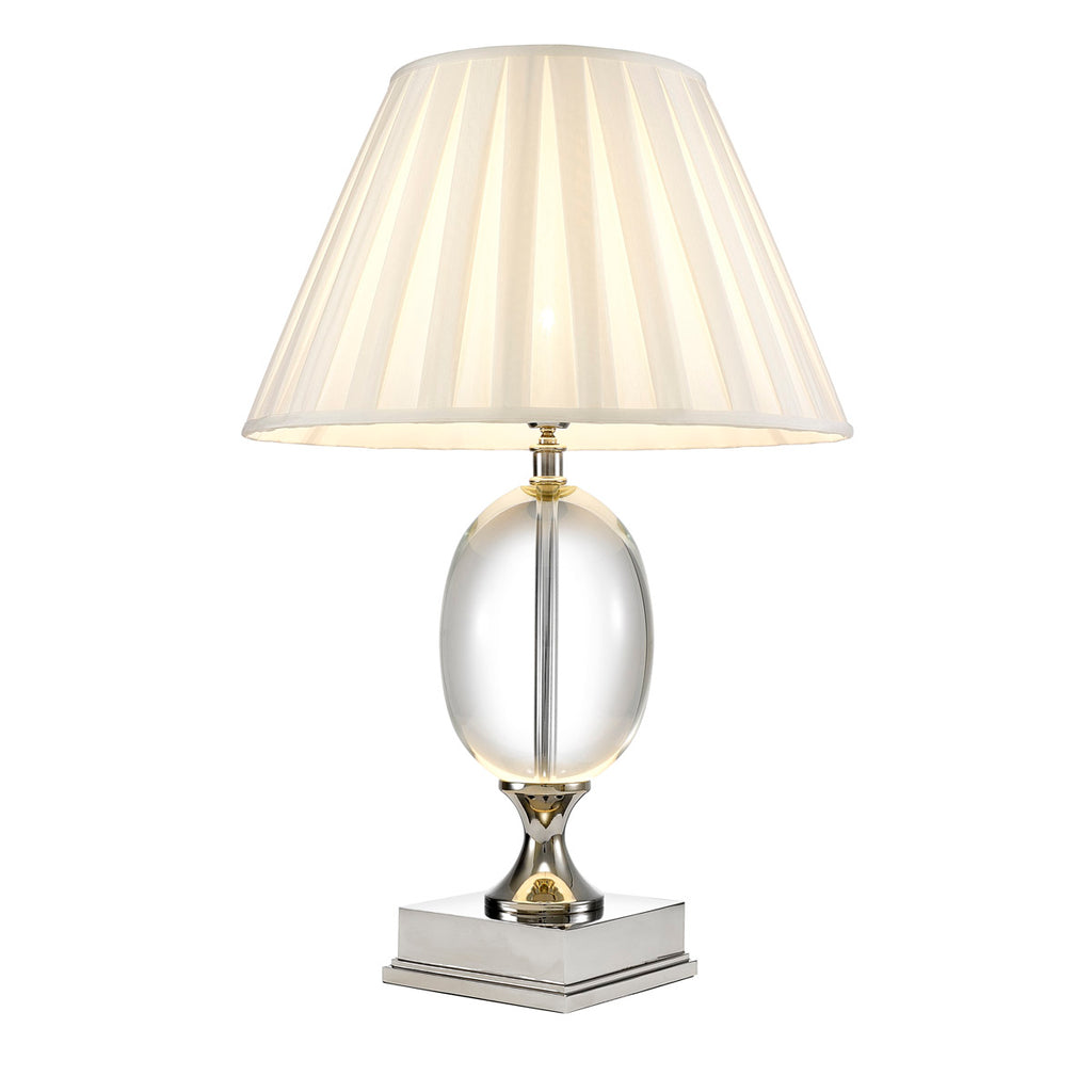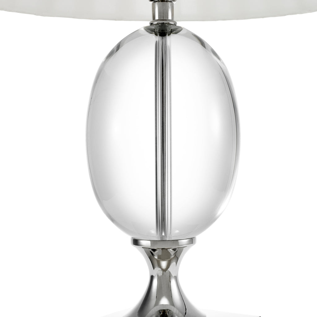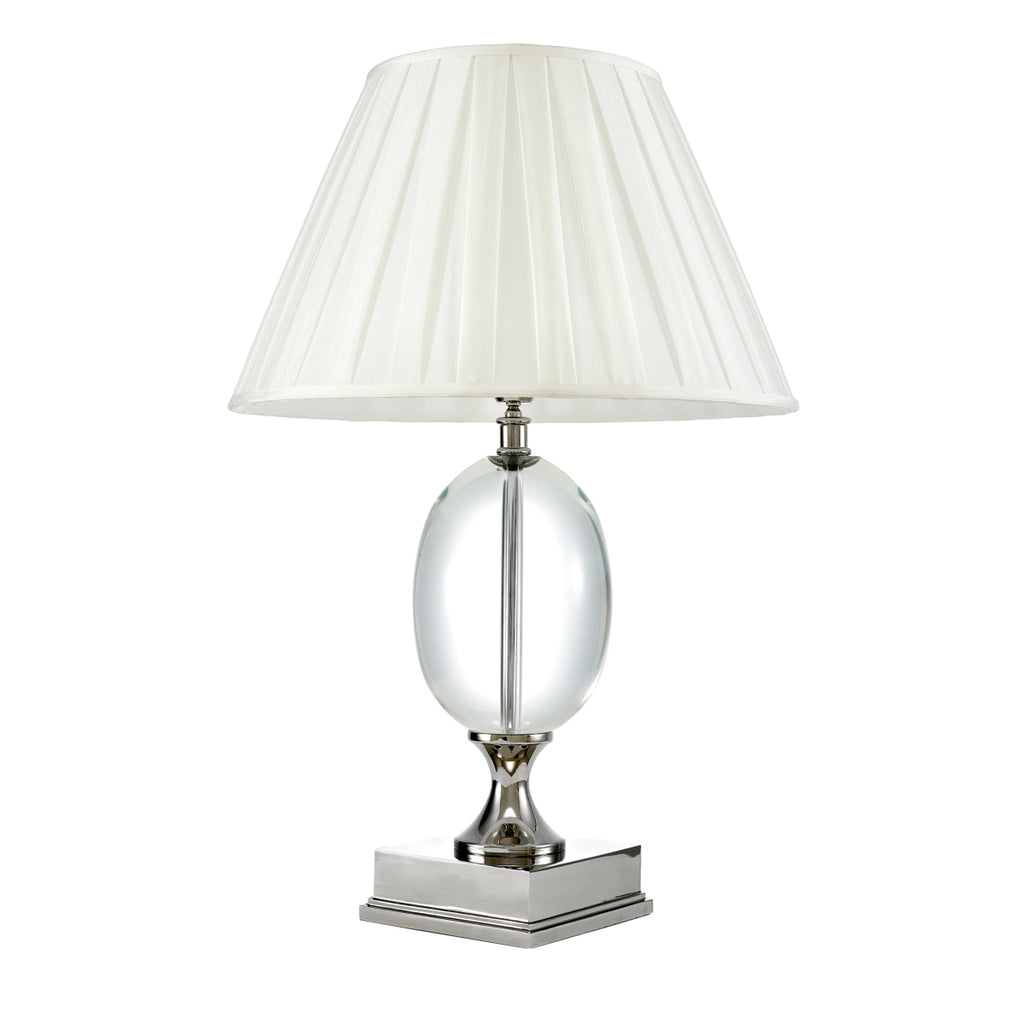 Create an warming welcome in your hallway or lounge with the Galvin Table Lamp. Inspired by the fresh clean lines of Scandinavian design, this gorgeous lamp is presented with a subtle glass base and a pleated white lampshade. The glass base has been expertly hand blown and mounted on a nickel finished base plate. A unique alternative with a little extra flair compared to the conventional every day table lamp.