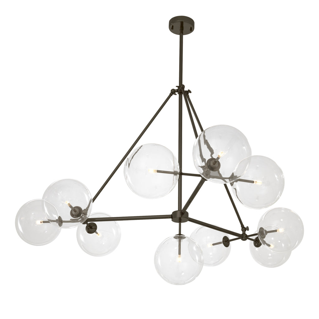 Illuminate your lounge or dining room pleasantly with the Bermude Chandelier. This sleek contemporary luminaire with a nickel finish contains 10 clear glass globes that each host their own light bulb.